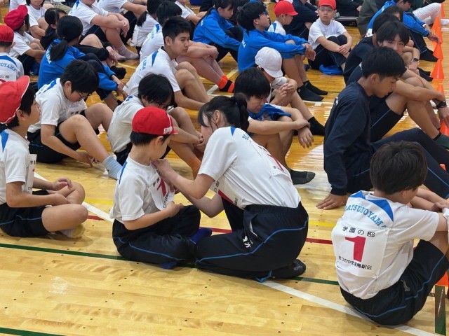 なんと今年は、全校縦割り(1~9年)が均等にチーム編成をしてのエントリーです。勝ち負けを決めるガチなゲームも楽しいですが、みんなでゆとり(湯鳥)をもって楽しむゲームもいいなぁと感じました。