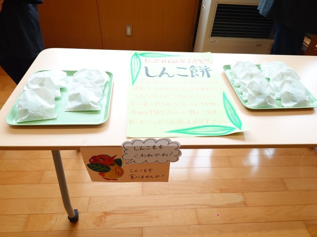 志んこ餅や神目箒茶の試飲、野鳥こけし、スキー展示などなど盛りだくさんです。