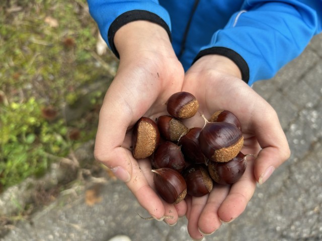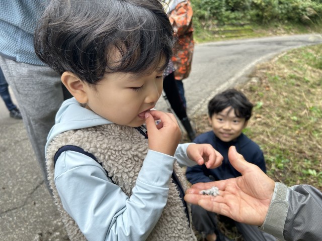 子どもは、野鳥観察の途中、「道草」をしながらアケビや栗、野草など、松之山の秋の味覚を楽しんでいました。