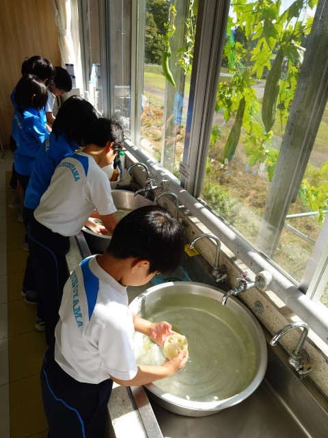 その後、皮を剥いたり種を取り除いたりしながら揉み洗いです。