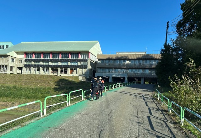 雲一つない青空が私たちをつつんでくれています。太陽の光を浴びながら子どもたちが登校しています。