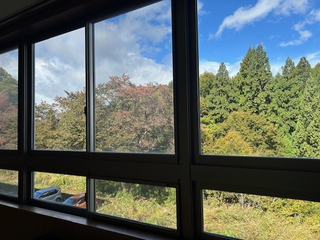 校舎の窓から見える木々が、少しずつ色づき始めました。