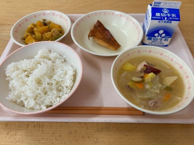 カボチャ、さつまいも🍠など秋野菜がふんだんに入った美味しい給食でした。