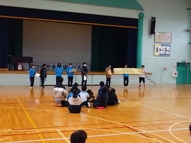 今月は、まつのやま学園ハートウォーミング月間です。互いの親睦を深めたり、いじめについて考えたりする期間です。