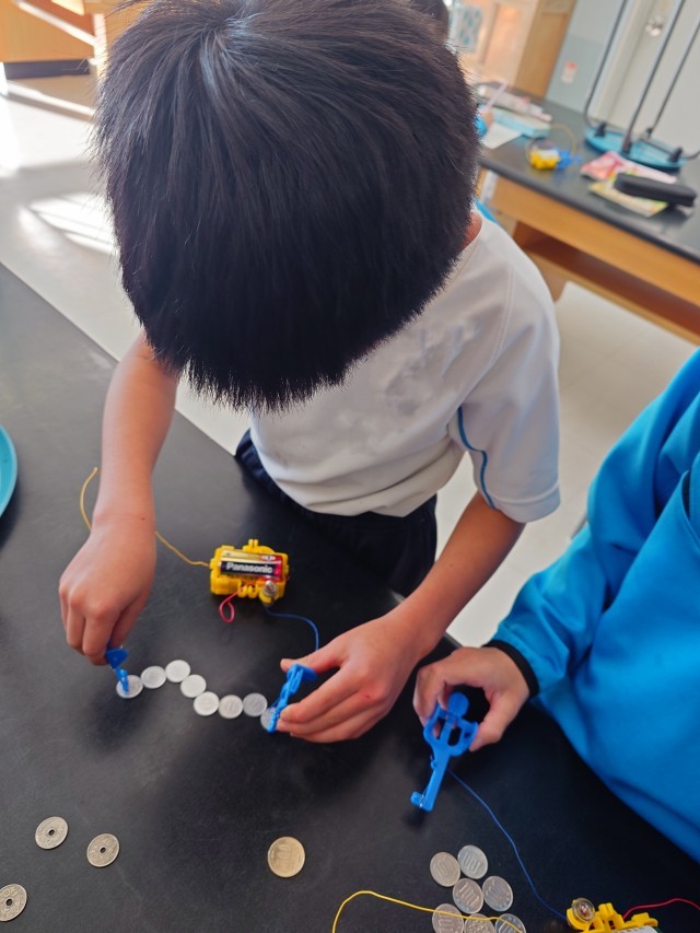 身近なものを試行錯誤しながら、電気の秘密を発見していっています。