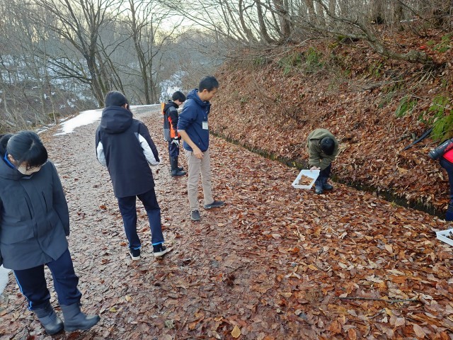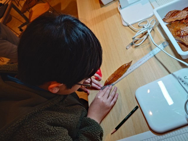 今日は、落ち葉を拾い、種類ごとにデータを取りました。