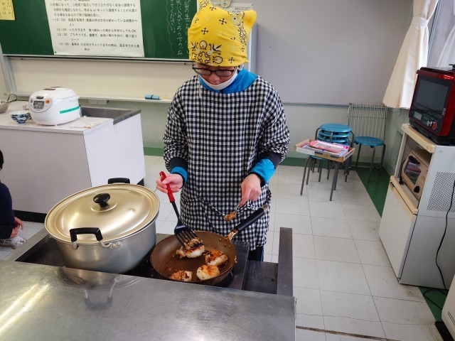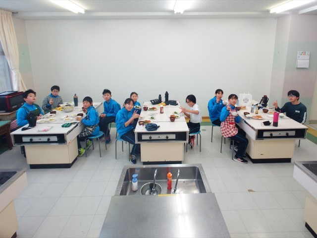 6年生家庭科では、班ごとに献立を決めて1食分の調理をしました。