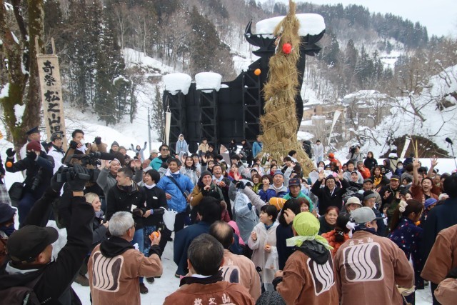 今日は、松之山地域の奇祭・むこ投げすみ塗りに参加しました。