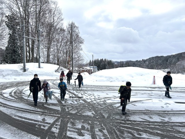 明日は卒業式、春を目前にしたこの時期に降る雪は、まるで子どもたちの門出を祝うかのようです。