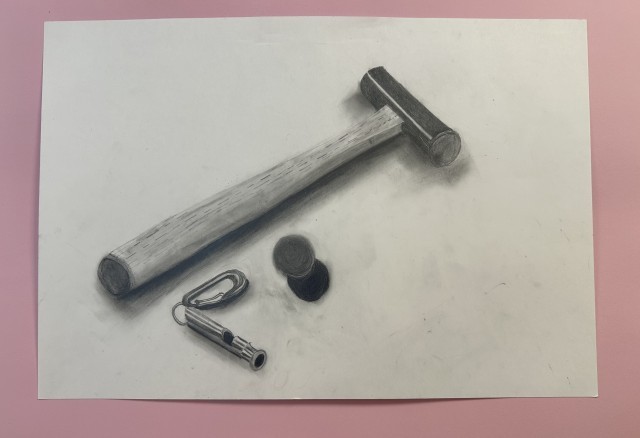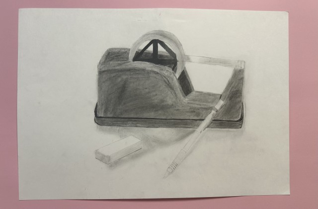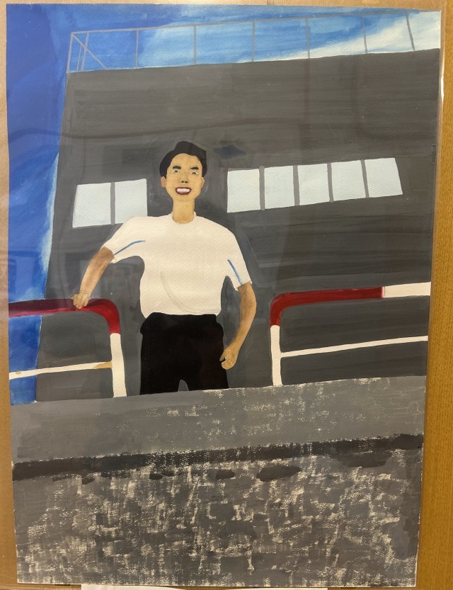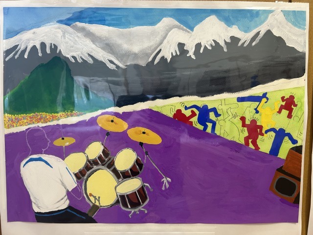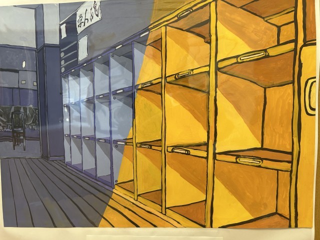 美術の時間に子どもたちが熱心に仕上げた力作です。個性豊かに描かれた作品ばかりで足を止めて見入ってしまいます。