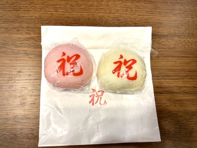 復活した紅白饅頭を配ってみんなでお祝いをしました。