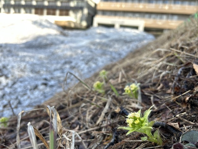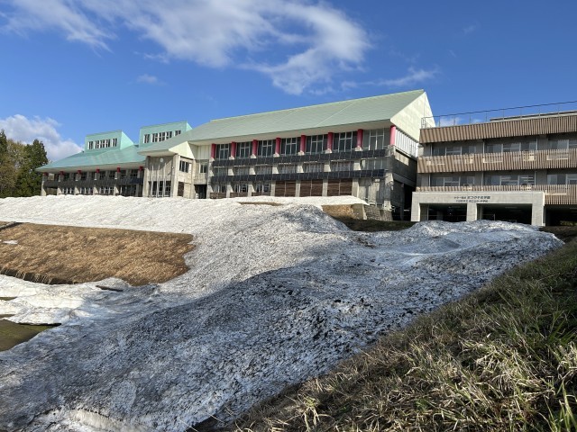 今朝のまつのやま学園は、少し冷え込んだ朝を迎えました。朝の気温は4度。校舎の周りには、まだまだ雪が残っています。