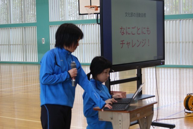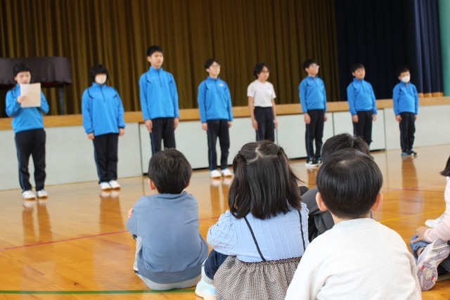 つくし会オリエンテーションを行いました。委員会活動や緑の少年団、部活動についての紹介がありました。