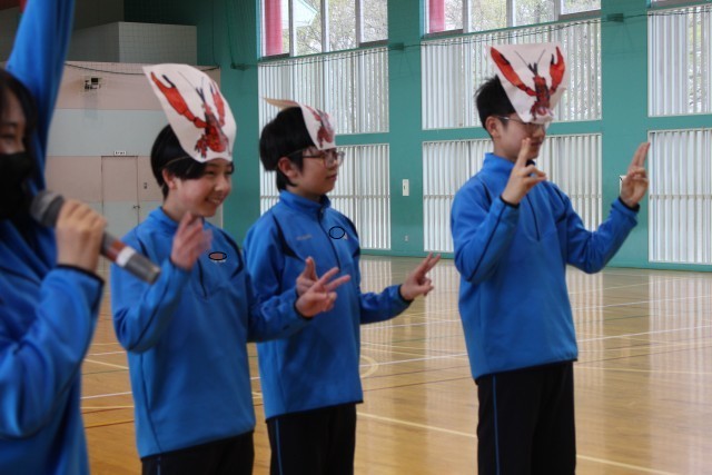 部活動紹介では、顧問の先生のものまねを交えた発表や、ローラースキーを実際に披露する場面、プレゼンテーションを使った紹介、ザリガニを真似した演出など、工夫を凝らした内容が見られ、会場は大いに盛り上がりました。