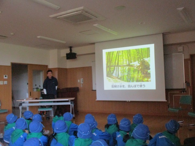 入団式後には、十日町市立里山科学館「森の学校」キョロロの学芸員様よりクイズを交えながらまつのやまの自然についてご講話をいただき、子どもたちはより一層まつのやまの自然に興味をもつことができました。
