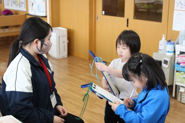最初は少し緊張していた子どもたちも、回数を重ねるうちに、相手の目を見て話したり、相手に伝わる声で話したりする姿が見られるようになりました。生活科の目標「身近な人や社会と関わりながら、生活に必要な力を身に付けること」につながりますね。同時に、将来、学校生活だけでなく社会に出ても必要となるコミュニケーション力の基礎を育てる学習にもなります。他者とのかかわりを通して、様々なことを学んでいる最中です。