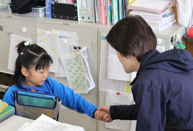 1・2年生は、「あくしゅ大作戦」に取り組みました。子どもたちは、「私の名前は○○です」「名前を教えてください」「握手をしてください」という一連のやり取りを通して、自分からあいさつをし、相手の話を聞き、気持ちよくかかわる経験を重ねました。