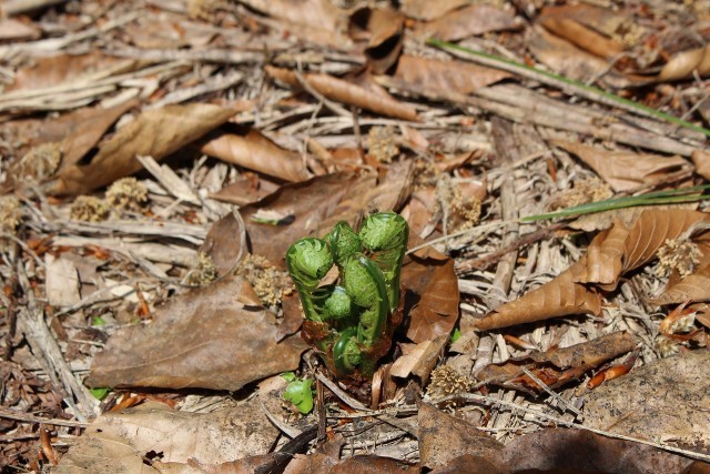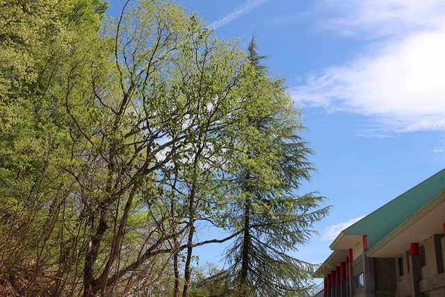 校舎の周りを歩いてみると、あちらこちらでさまざまな芽が顔を出しているのに気付きます。残雪の間からのぞく若い緑に、春の訪れを感じます。