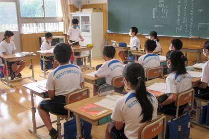今日の1時間目、5・6年生は国語でした。5年生は漢字の練習をした後、教科書を読んで先生と活発に意見交換をしていました。6年生は、パネルディスカッションをしていました。司会者の児童の進行で、自分の思いや考えを堂々と発表し合っていました。