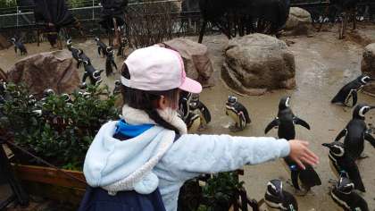 お弁当を食べ終わった後は、マゼンランペンギンの餌やりを見ました。