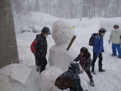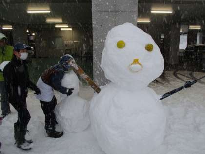 「アウトドア部」、今日の活動は「雪だるまづくり!」