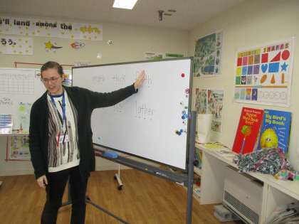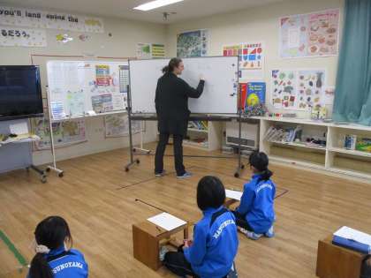今日は4年生が、ALTの先生にその発音を習っていました。