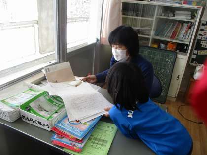 1年生と2年生は、それぞれ国語の学習。