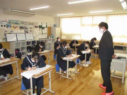 9年生は今日もテスト。普段は「体操着」で過ごす学園の子どもたちですが、大事なときには中学校課程の子どもたちは制服を着用します。身も心も引き締まります。