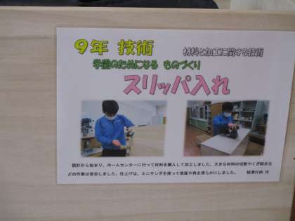 9年生が、技術の時間に「スリッパ入れ」を作りました。