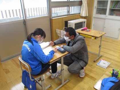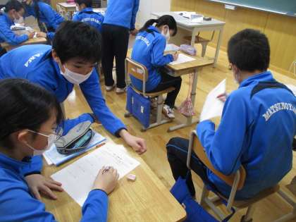 ペア学習で学ぶ子、何人かでああでもないこうでもないと議論している子、教員とのやりとりの中で考えを深める子、様々です。目標を共有して、きちんと学習が成立しているのが、素晴らしいことですね。