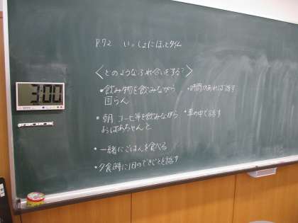 「家族の団らんの時間」を学習しているのです。このあと、お茶の入れ方を学んだり、おやつ作りをしたりします。