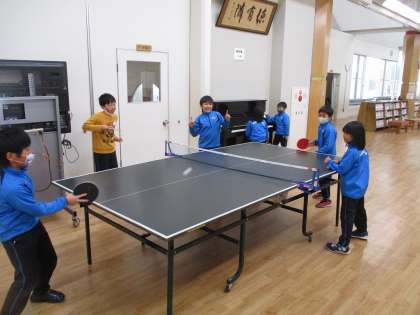 卓球に興じる子。なんかいろいろ言い合っていますが、みんなでわいわいやっています。