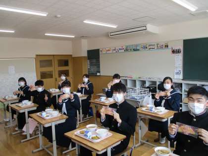 今日は彼らにとっては義務教育最後の給食。ぜひこのメニューを覚えておいてほしいです。