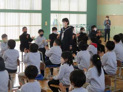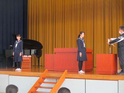 在校生、6年生以下は本番同様に「学園トレーナー」を着用。7・8年生がとても立派に所作を行うので、それを見て小さな子たちもがんばります。