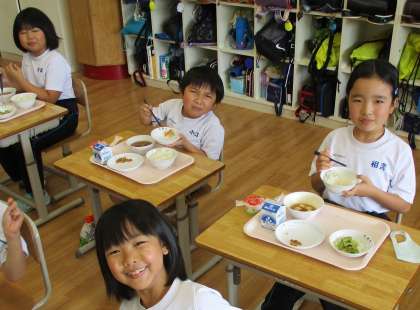 子どもたちの先生たちのごはんもいつもどおり美味しい!子どもたちもにこにこ食べています。