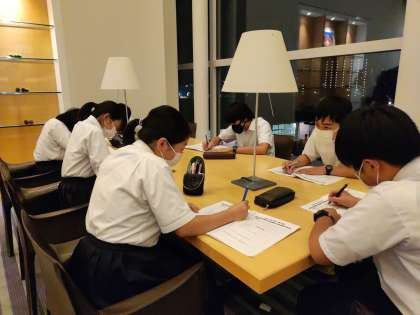 反省会を終えて就寝準備にはいります。大人はお疲れモードですが子どもたちは全員元気です。これで修学旅行2日目の配信を終わります。おやすみなさい、また明日。