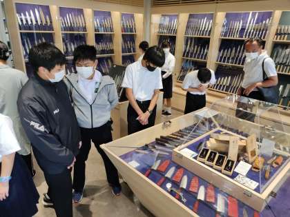 藤次郎オープンファクトリーにて包丁づくりを見学しました。職人さんの匠の技術に触れ、お高い包丁を購入した生徒もちらほら。これで全ての行程を終了して帰路につきます。みんな元気で仲良く学び、楽しんだ3日間でした。
