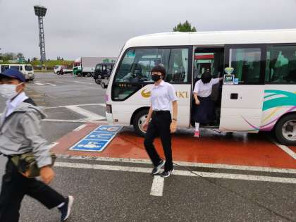 越後川口インターでトイレ休憩を済ませて学園に向かいます。5時10分頃の到着予定です。
