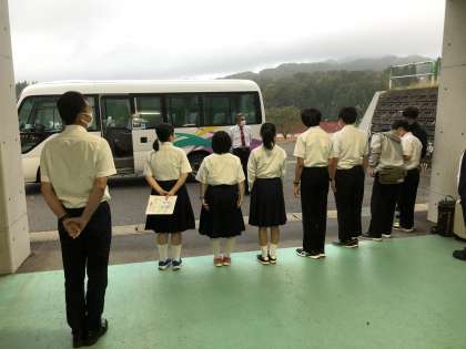修学旅行隊が、ほぼ予定通りの時間で学校に帰着しました。疲れていたと思いますが、その笑顔から楽しく充実していたことが伝わってきました。解散式では、お世話になった添乗員さんへのあいさつなど、しっかり最後を締めくくっていました。今日はゆっくり休んで、明日からの振り返りや次の活動に向かってください。本当にお疲れ様でした。
