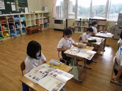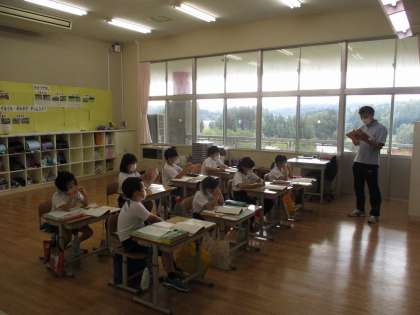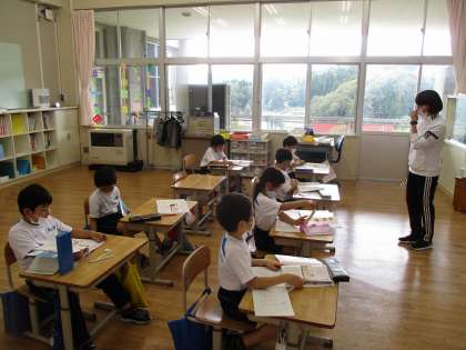 2年生は国語です。「人に説明する力」を高める学習ですね。元気の良い2年生ですが、姿勢良く集中して学習に取り組んでいますね。お話の聴き方が素晴らしい。