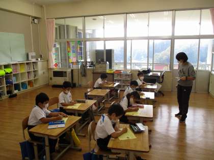1年生も2年生も、落ち着いて学習を進めています。まだ小さいのに、しかも週末で疲れてもいるのだろうに、立派な授業への臨み方です。