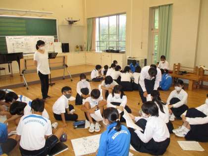 ミュージックステージの後にはチャレンジ(縦割り異学年)班ごとの発表もあります。これがまた、良いのです。今日はこれから、その練習もあります。