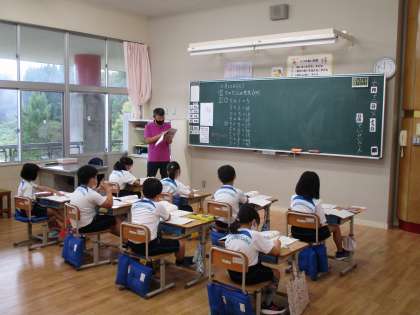 2年生は、来ました「超・重要単元」の「九九」。小学校算数、最初の大きな山です。今日は「五の段」ですね。先生と一緒に、みんなで大きな声で「五一が五…」と口にしていました。やはり鬼門になるのは昔も今も「六」「七」「八」あたりなのかな。