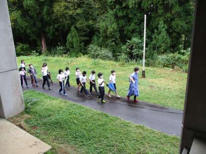 3年生と4年生は校舎の周りを歩いていました。ただの散歩ではありません。「秋の外来種駆除活動」のターゲット「セイタカアワダチソウ」の現状を確認しに回っています。ここ最近ものすごい大群生も見られるようになりました。頼むぞ緑の少年団。