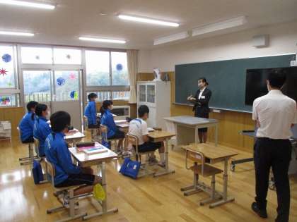 9年生は教育実習の先生に質問を浴びせていましたよ(^^)今日から中学校の保健体育科の教育実習生が来校中です。歳も近いし、いいお姉さん的な存在ですね。