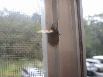 そして、この地方の秋に出る迷惑な虫「K」が今日も網戸の間のところに居りました。間違って戸を開け閉めしたりすると大変なことになります(T_T)こいつは稲の害虫でもあるらしい。嫌な奴ですが、生態系の一部ではあります(>_<)