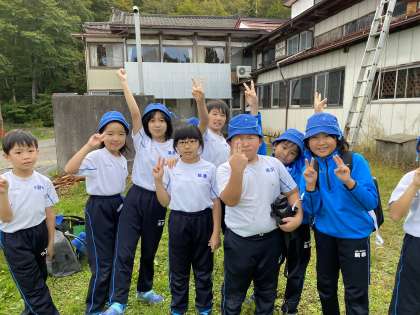 今日は、大松山遠足です。第一ポイントの植木屋さんで休憩です。