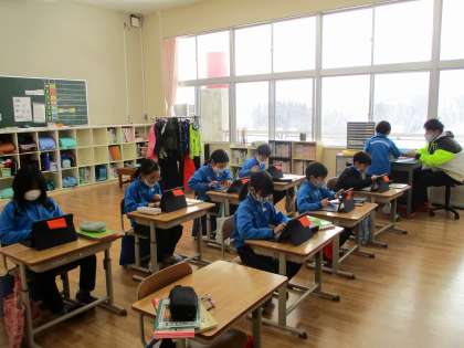 1・2年生は音楽です。もう「旅立ちの日に」の練習をしています。卒業式の歌ですね。考えてみれば、そう遠くないですね。