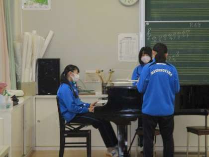 音楽部は新しい楽曲にチャレンジ中。