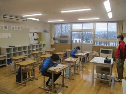 東校舎の教室では、英検を行っています。何級を受けているのでしょうか。がんばって!